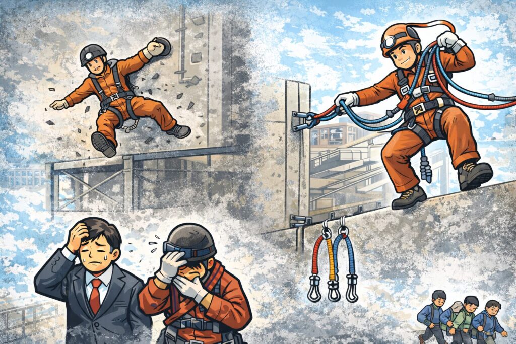 ゼロ点墜落の謎ゼロ点墜落は、なぜ起こる? ロープアクセスでの墜落原因は、ゼロ点墜落が圧倒的。 公式見解・・・はともかく、本当の原因はゼロ点墜落が大半と、実感として思う。 ゼロ点墜落(ゼロ支点墜落)の原因は、・・・まともな安全感覚の欠如 […]