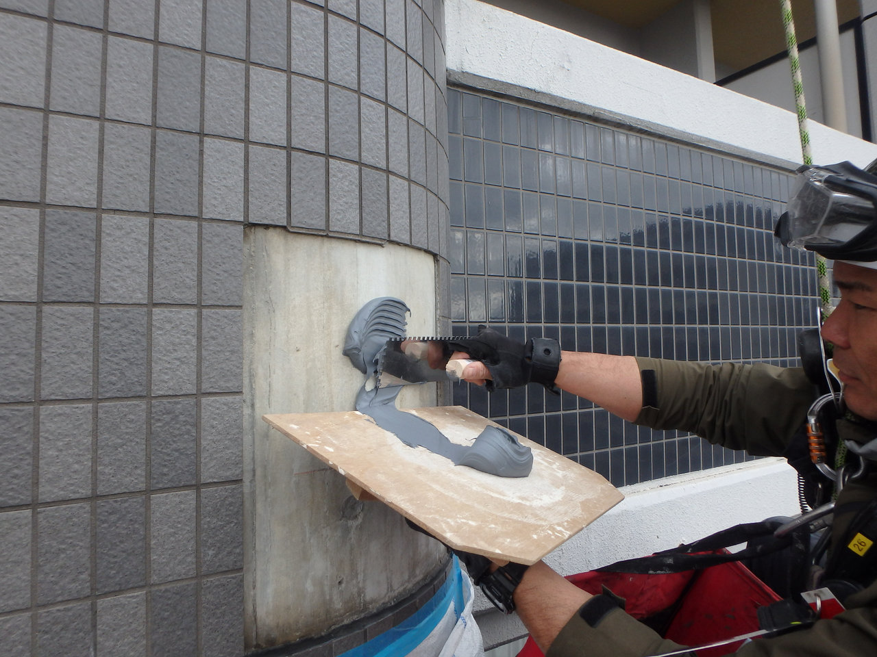全面打診調査(12条点検)では、外壁の浮きや劣化を確実に把握する必要がありますが、ロープ操作の技術が不十分な場合、調査精度や記録の質が低下するリスクがあります。