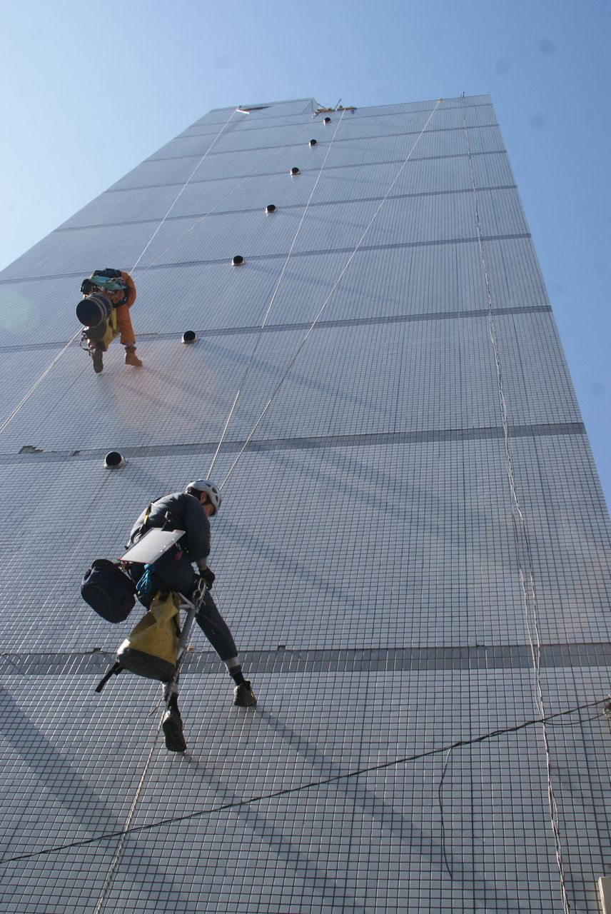 株式会社きぃすとんでは、独自のロープアクセス技術「SORAT」を用い、三次元的に自在な移動を可能としています。単純な上下移動にとどまらず、構造物に応じて柔軟に移動できるため、他社では対応が難しい外壁調査・外壁補修にも対応可能です。